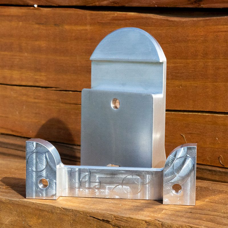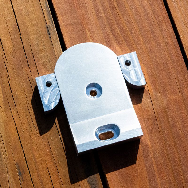Start by screwing the first metal plate into the back of your mount or wooden base.